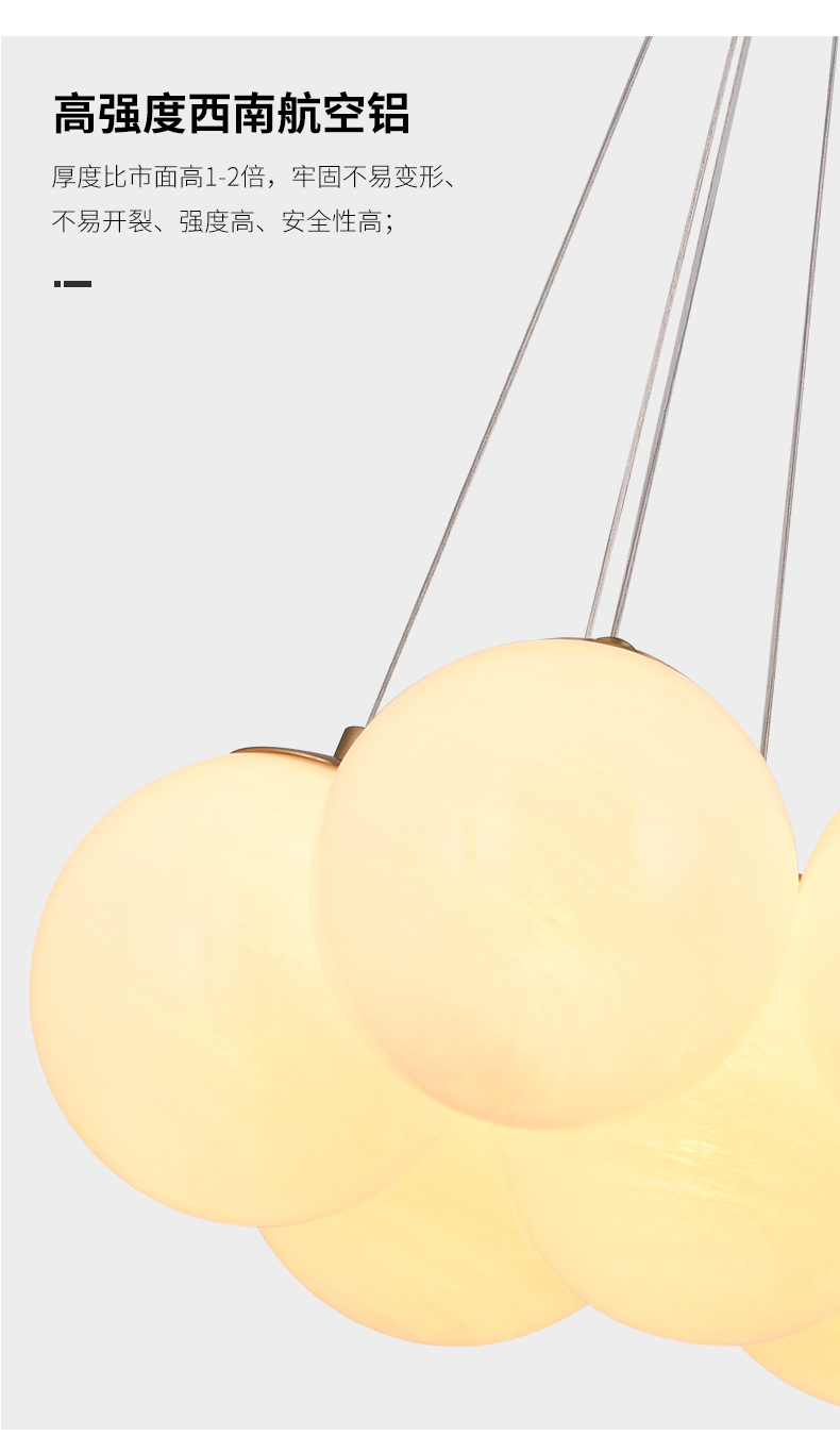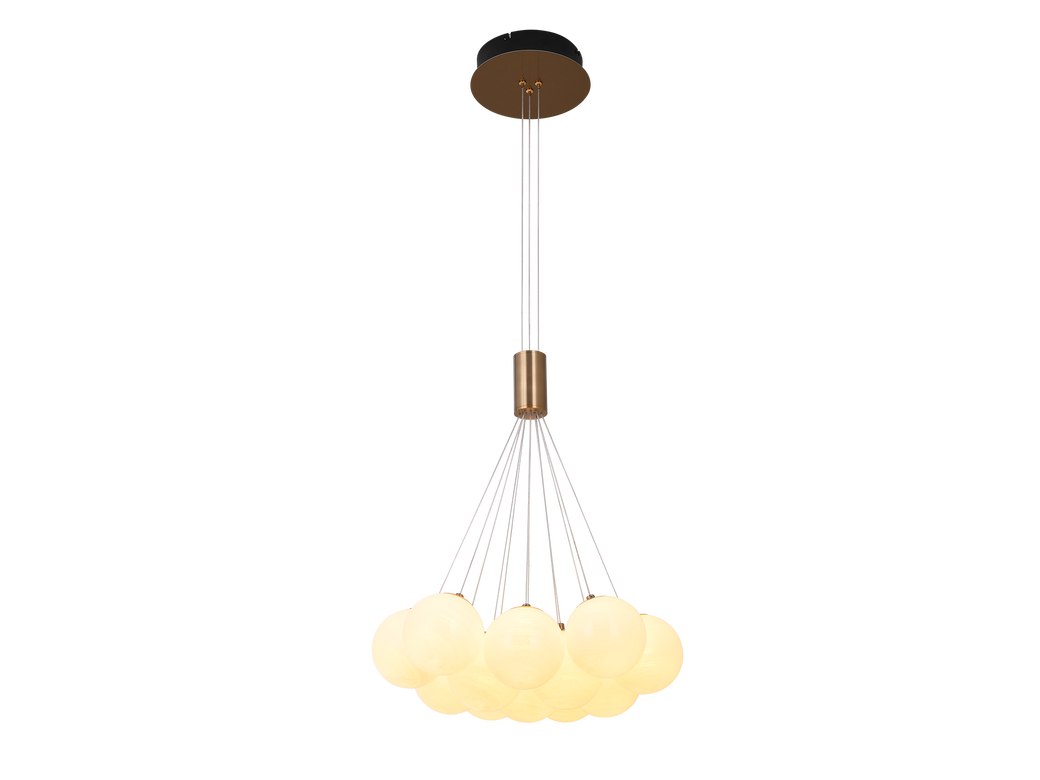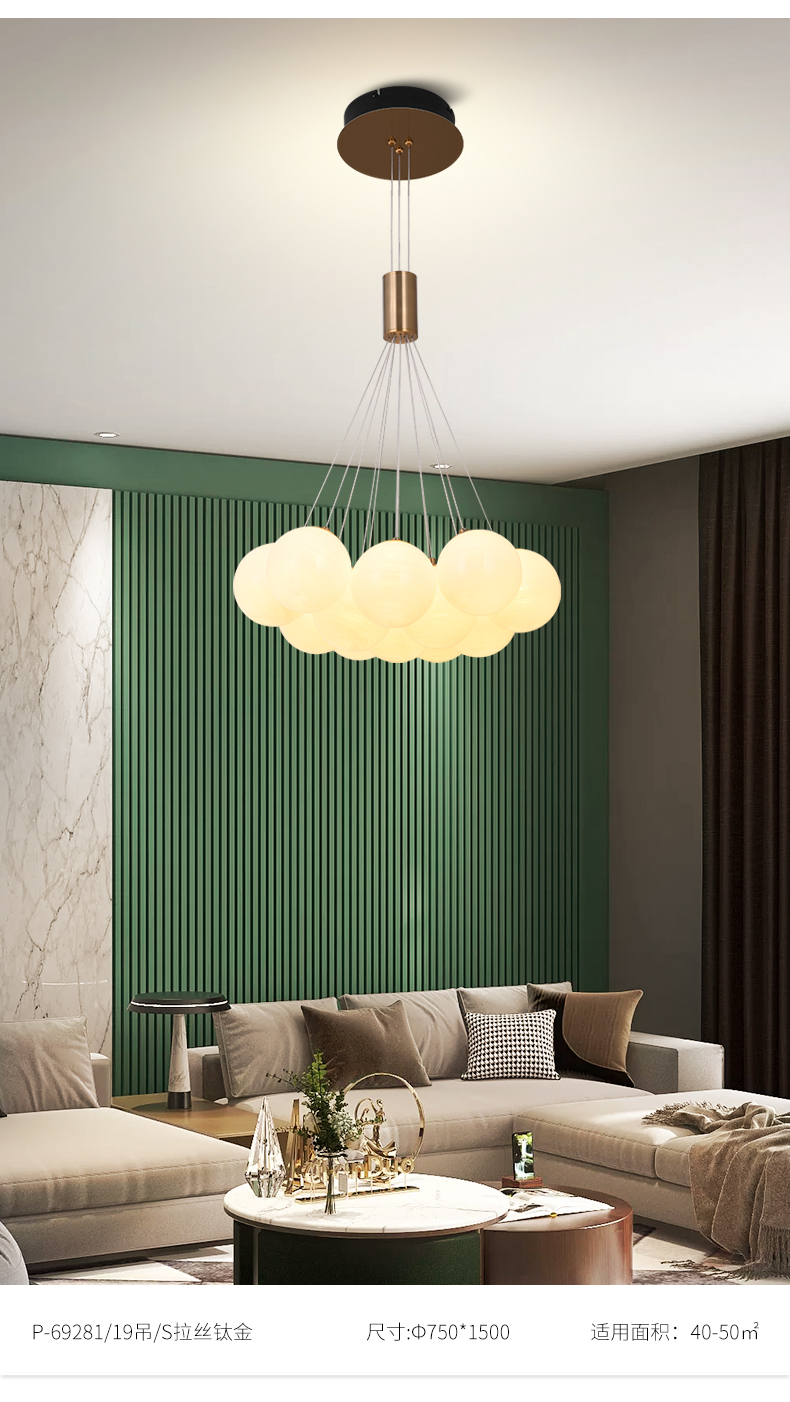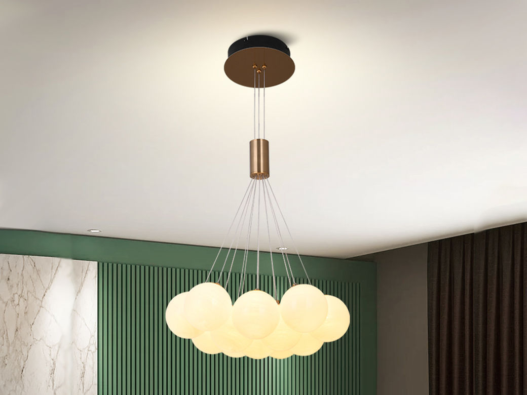 宏光灯饰 极简 冷扎钢板+玻璃球 LED 108W 3000K S拉丝钛金色 12头吊灯