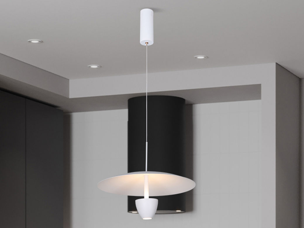 宏光灯饰 极简 冷扎钢板+铝材+亚克力 LED 16w 3000K 沙白+S拉丝钛金色 吊灯