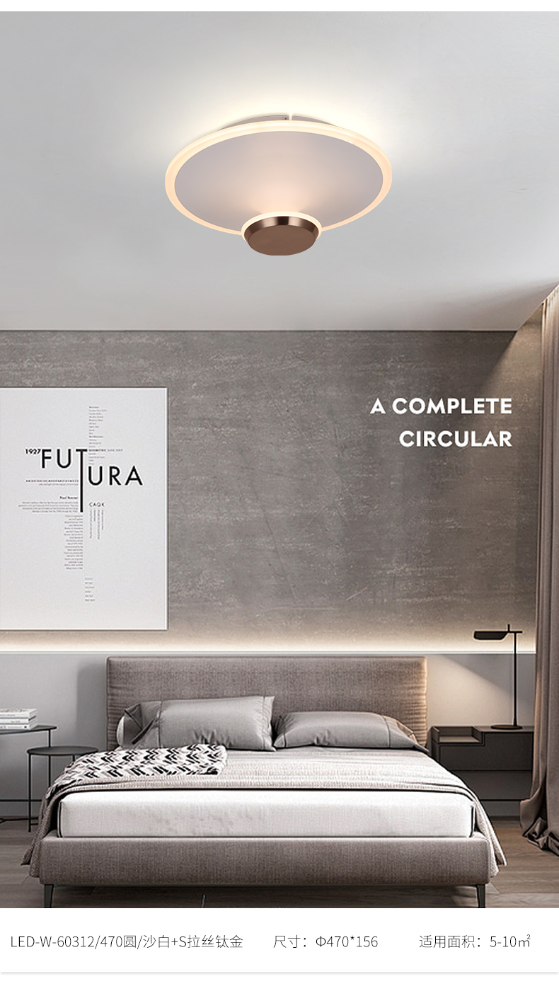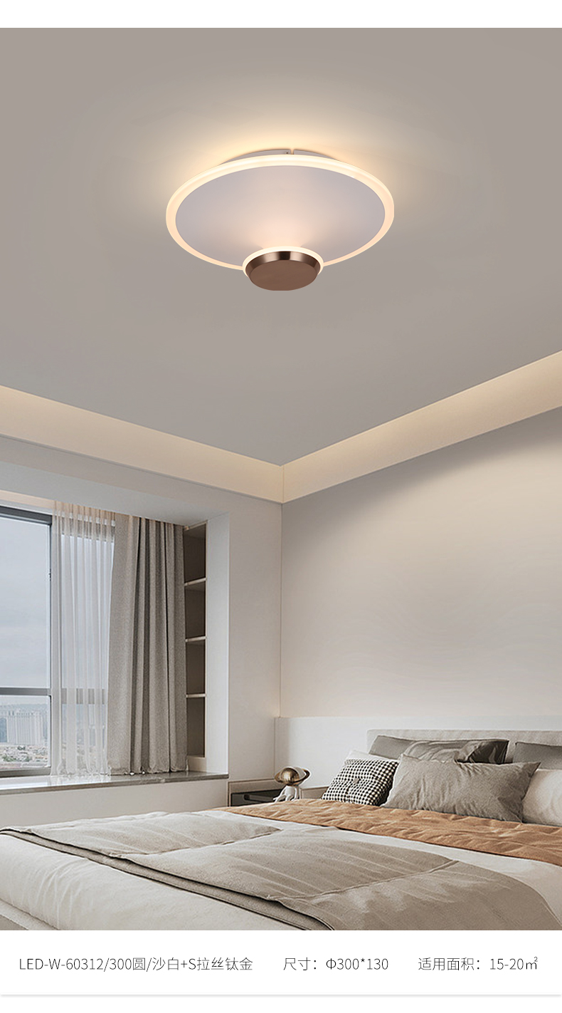宏光灯饰 极简 冷扎钢板+铝材+亚克力 LED 16w 3000K 沙白+S拉丝钛金色 吊灯