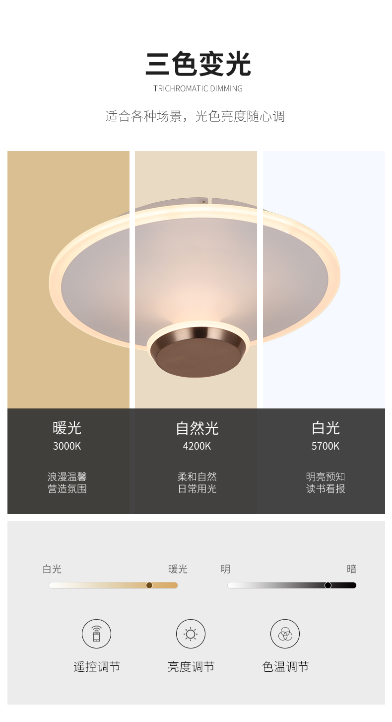宏光灯饰 极简 冷扎钢板+铝材+硅胶 LED 110w 2.4G 沙咖+德国金色 吊灯¥2666
