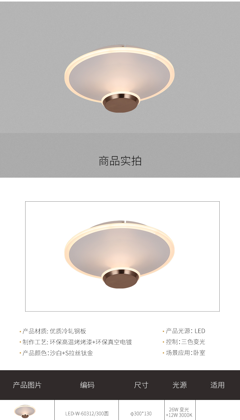 宏光灯饰 极简 冷扎钢板+不锈钢+硅胶 LED 78W 变光 S拉丝钛金色 吊灯¥1694