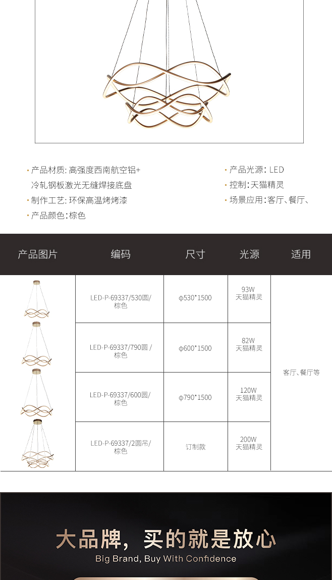 宏光灯饰 极简 冷扎钢板+铝材+硅胶 LED 200w 天猫精灵 亮棕色 吊灯