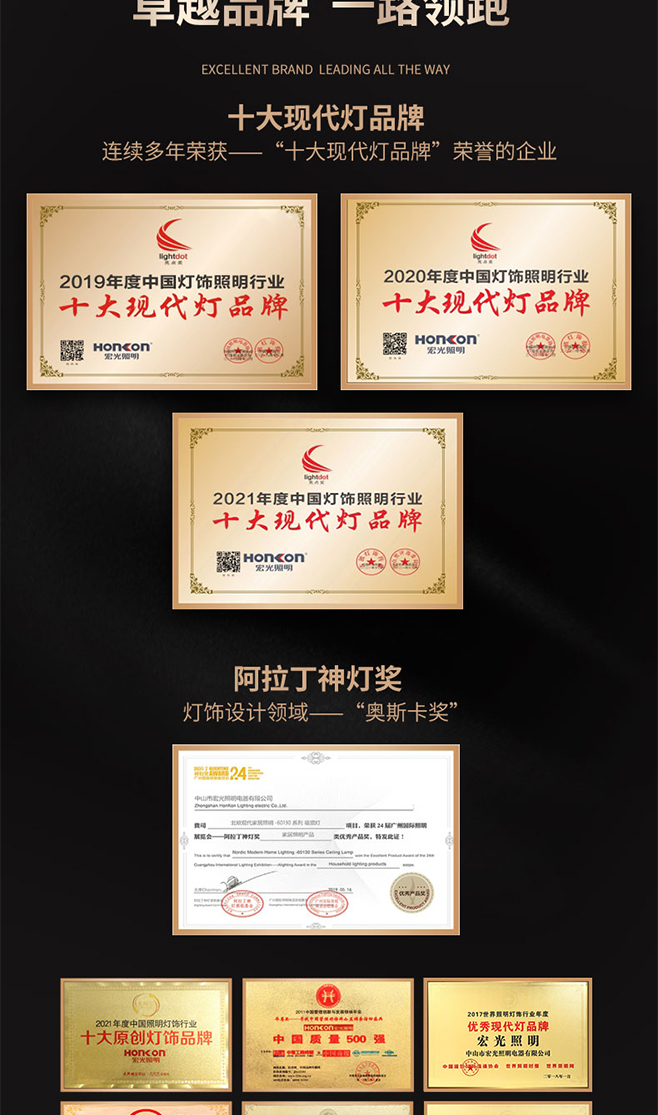 宏光灯饰 极简 冷扎钢板+新型亚克力 LED 200W 天猫精灵 咖金色 吊灯
