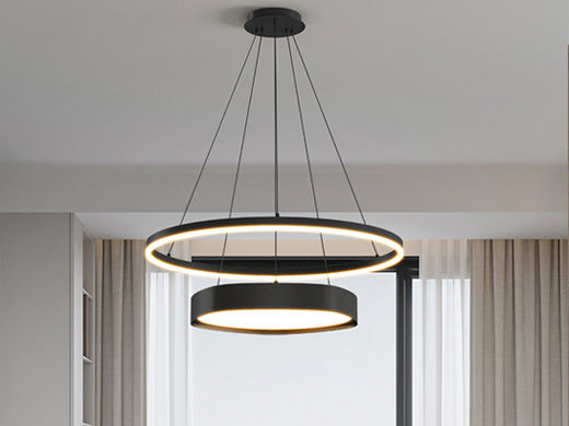 兮木优品 铁+铝材+导光板 LED 全光谱 三色变光 电镀珍珠黑 吊灯¥552