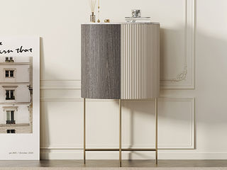 鹿屿 意式轻奢 不锈钢香港金+E1级中纤板贴鸡翅木皮+波浪板弯板 斗柜装饰柜