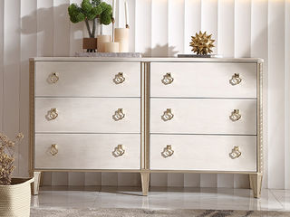 艾美侈 美式 进口榉木+艳阳花木皮+不锈钢拉手 香槟银+古典白 六斗柜