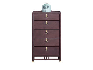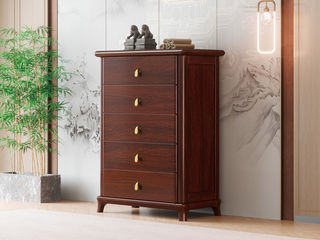 宝瑞·檀风 新中式 印尼金花梨木框架+多层实木板贴皮+电镀五金 紫檀色 五斗柜