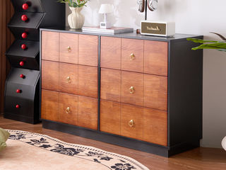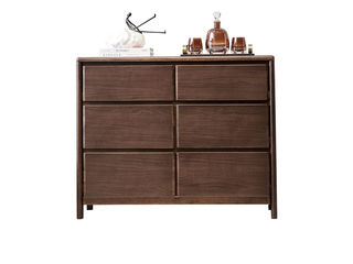 墨云阁 中古风 南美胡桃木+多层实木板+缓冲导轨 胡桃色 六斗柜