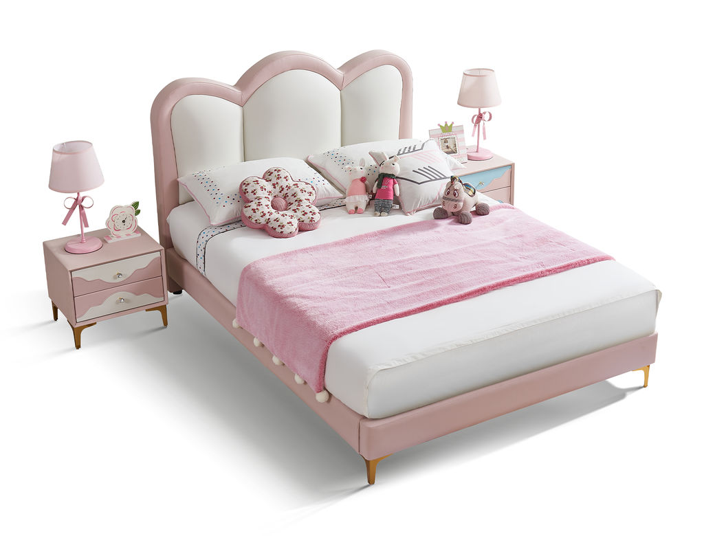快乐童眠 儿童床 硅胶去污皮+钢木排骨架+进口俄罗斯松木框架+高回弹海绵 粉白色 1.5M软床