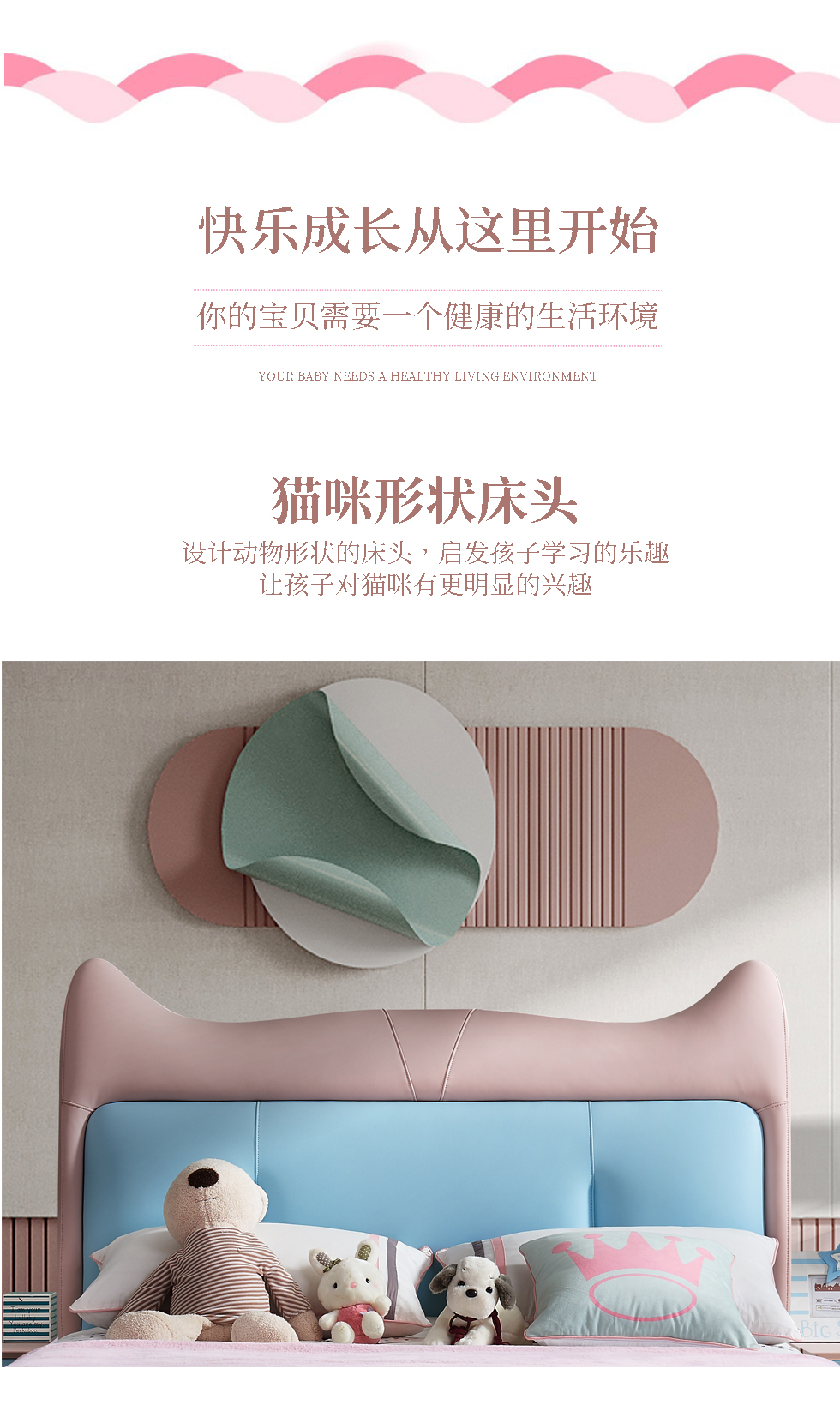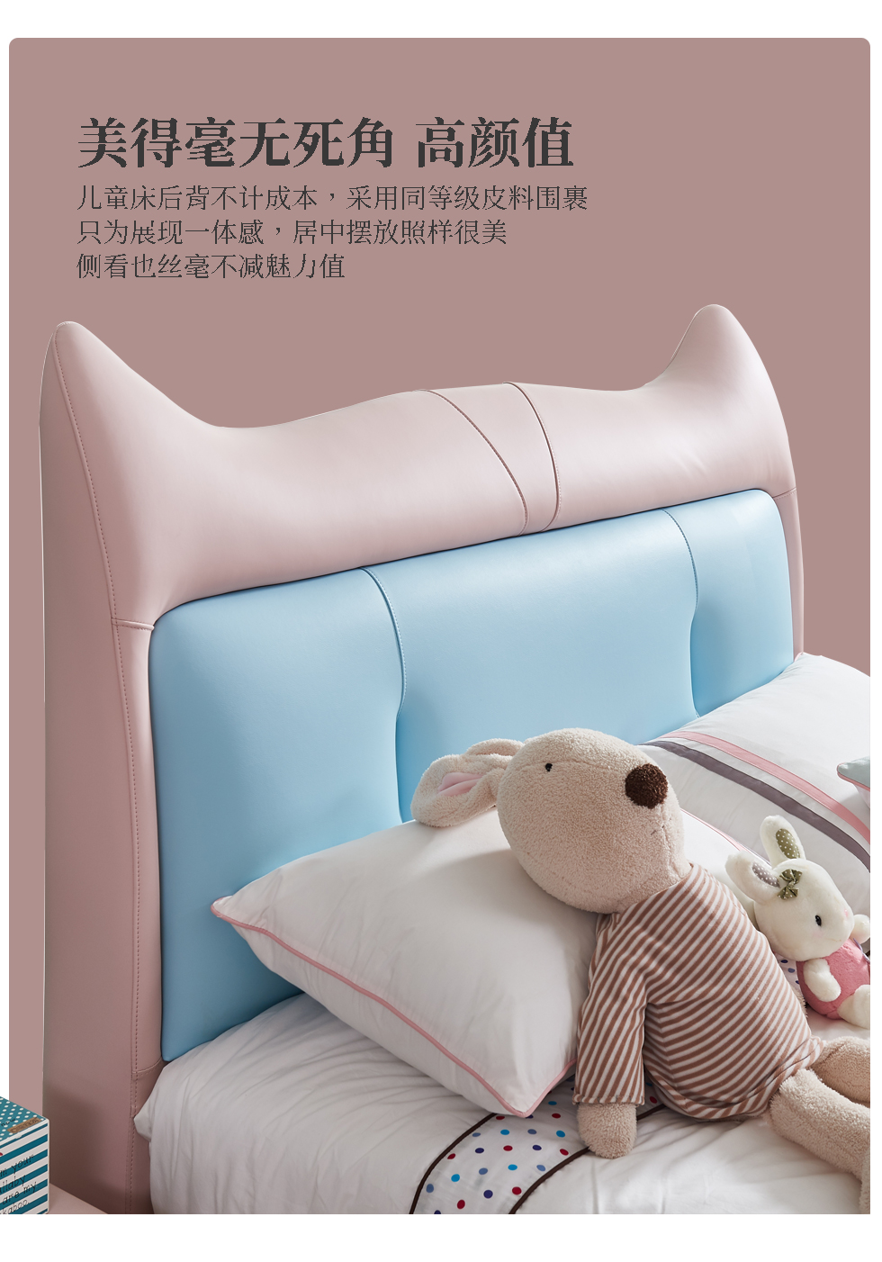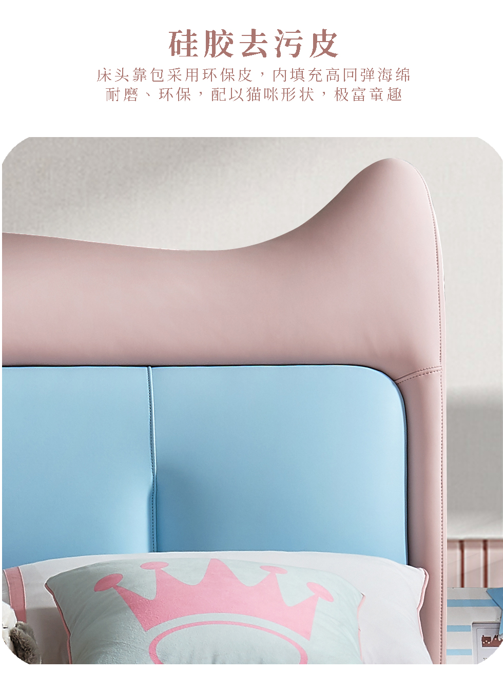 快乐童眠 儿童床 硅胶去污皮+钢木排骨架+进口俄罗斯松木框架+高回弹海绵 粉蓝色 1.5M软床
