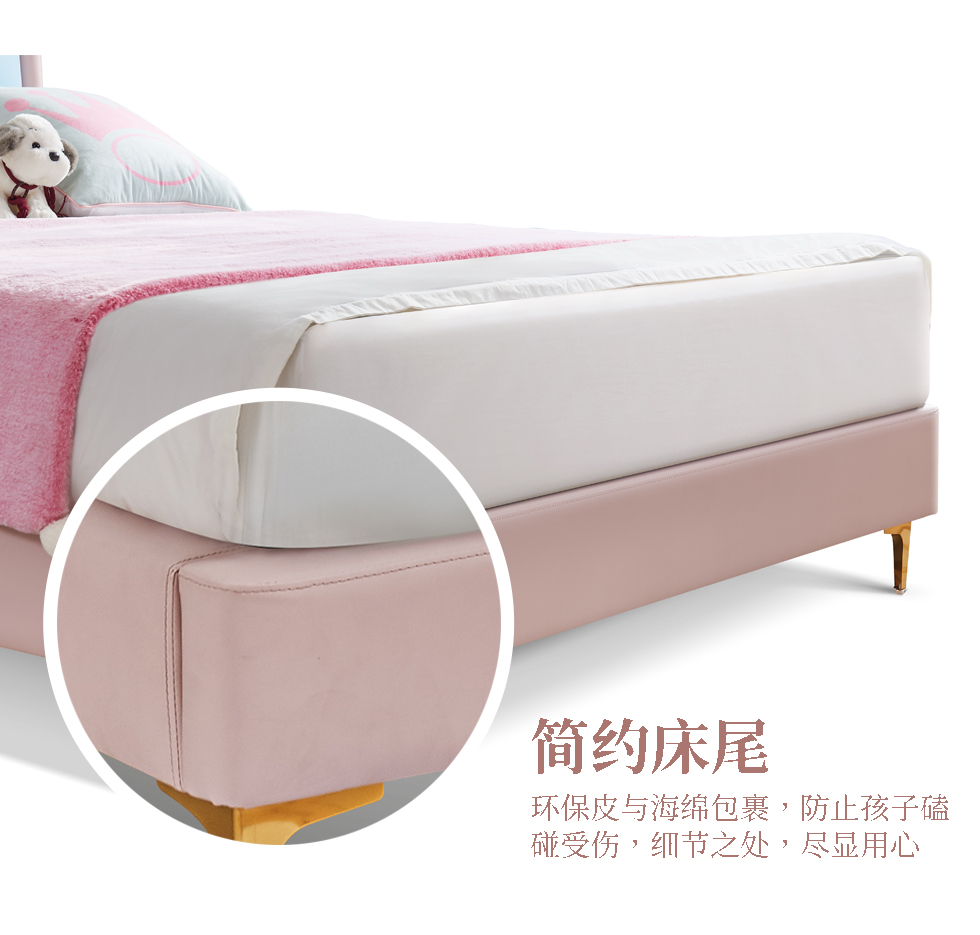 快乐童眠 儿童床 硅胶去污皮+钢木排骨架+进口俄罗斯松木框架+高回弹海绵 粉白色 1.5M软床