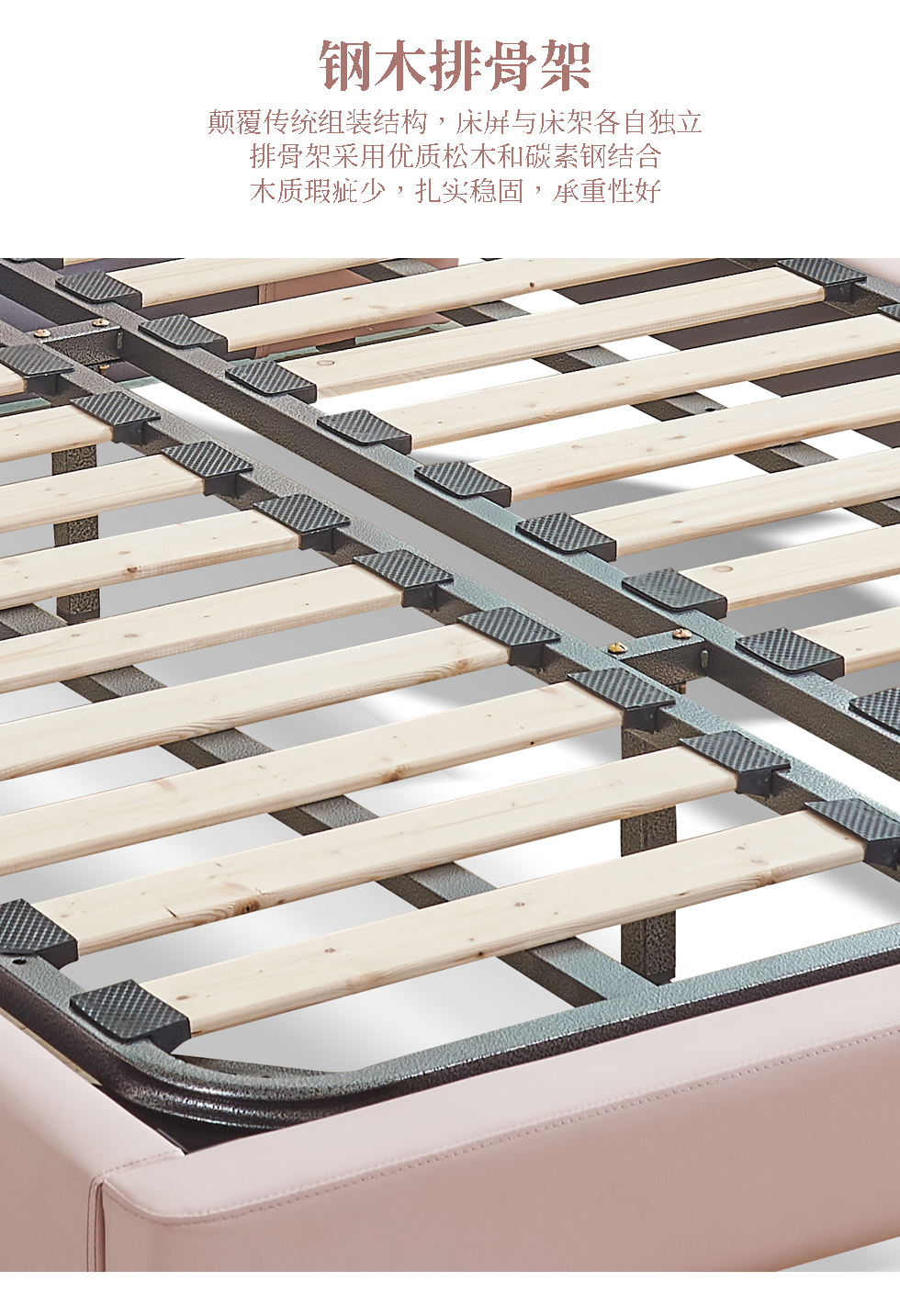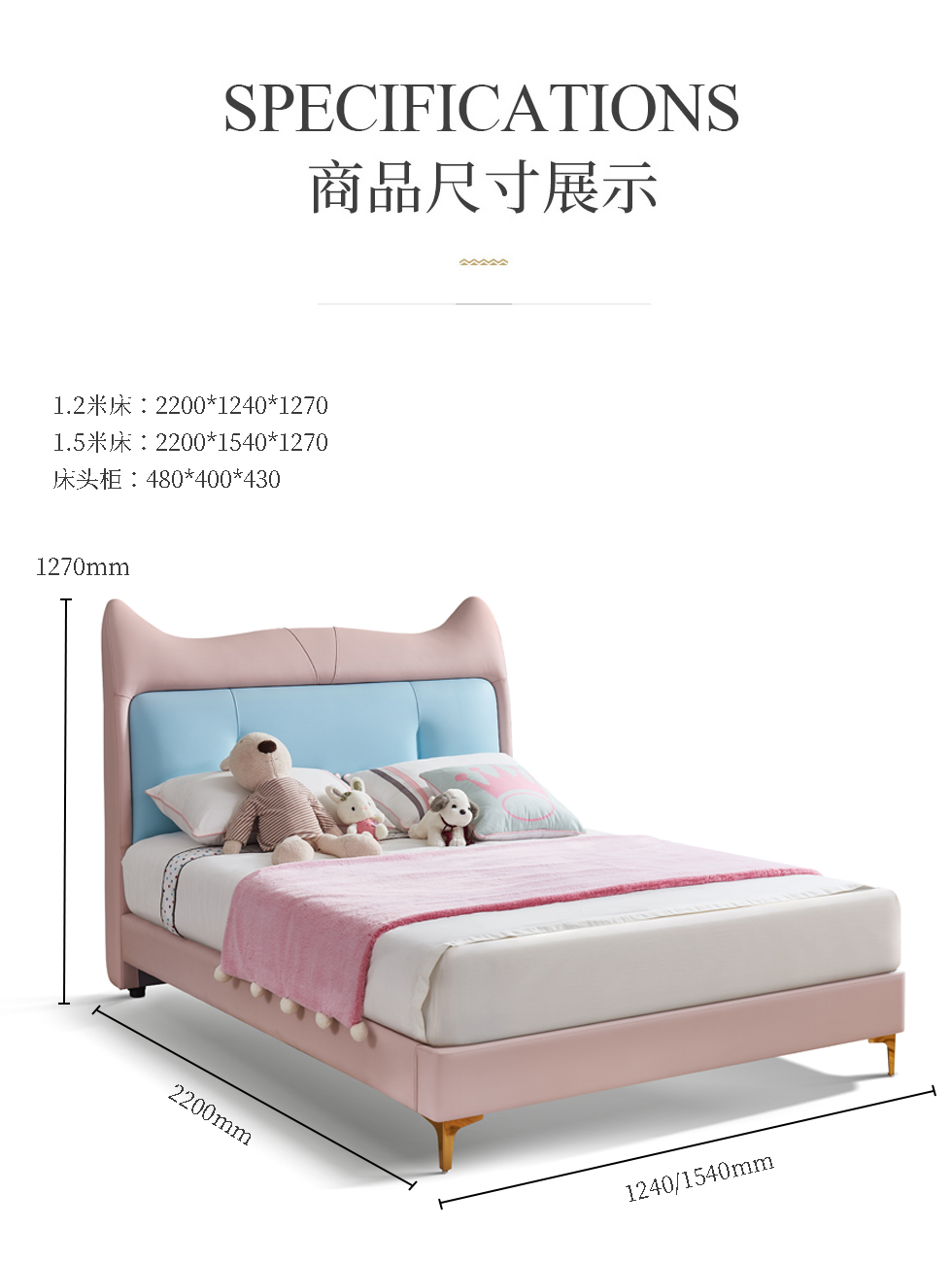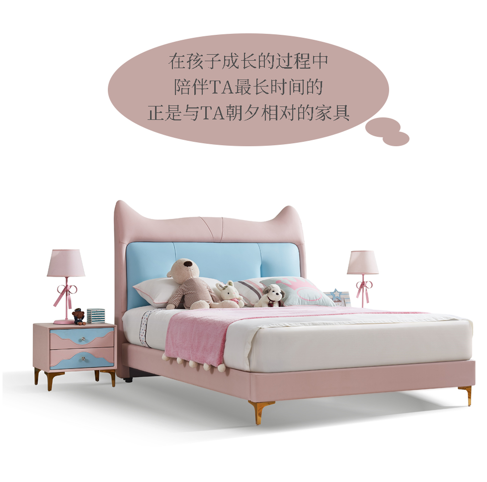 快乐童眠 儿童床 硅胶去污皮+钢木排骨架+进口俄罗斯松木框架+高回弹海绵 粉白色 1.5M软床¥3334