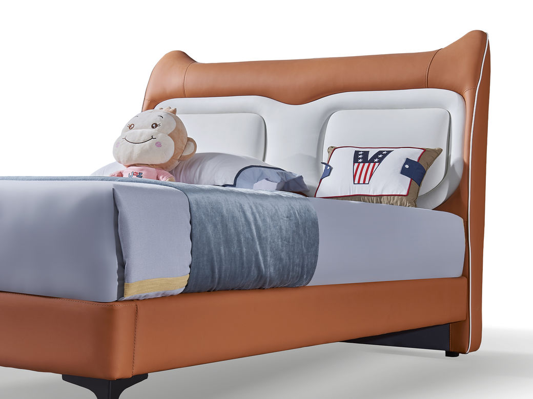 快乐童眠 儿童床 硅胶去污皮+钢木排骨架+进口俄罗斯松木框架+高回弹海绵 橙白色 1.5M软床 |