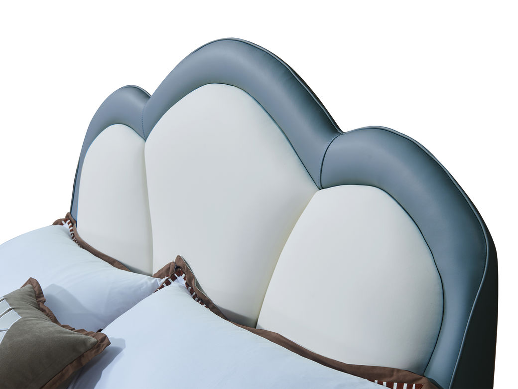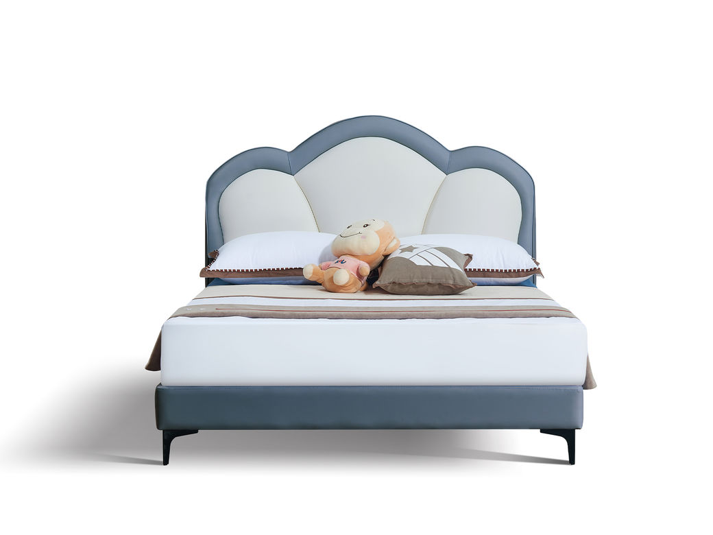 快乐童眠 儿童床 硅胶去污皮+钢木排骨架+进口俄罗斯松木框架+高回弹海绵 浅蓝加白色 1.5M软床