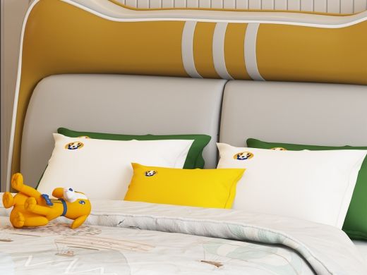 丁拉儿童软床 极简 生态硅胶皮+高回弹海绵+专利法国金不锈钢配件+进口实木+夹板+加宽10分钢木排骨架 黄色 1.5米皮床¥5501
