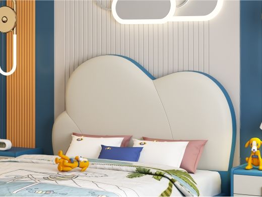 丁拉儿童软床 极简 生态硅胶皮+高回弹海绵+专利法国金不锈钢配件+进口实木+夹板+加宽10分钢木排骨架 蓝白色 1.5米皮床