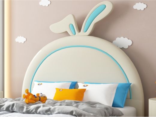 丁拉儿童软床 极简 生态硅胶皮+高回弹海绵+专利法国金不锈钢配件+进口实木+夹板+加宽10分钢木排骨架 蓝白色 1.5米皮床