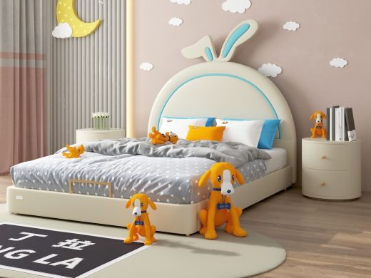 丁拉儿童软床 极简 生态硅胶皮+高回弹海绵+专利法国金不锈钢配件+进口实木+夹板+加宽10分钢木排骨架 米黄 1.5米皮床