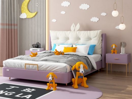 丁拉儿童软床 极简 生态硅胶皮+高回弹海绵+专利法国金不锈钢配件+进口实木+夹板+加宽10分钢木排骨架 紫色 1.5米皮床