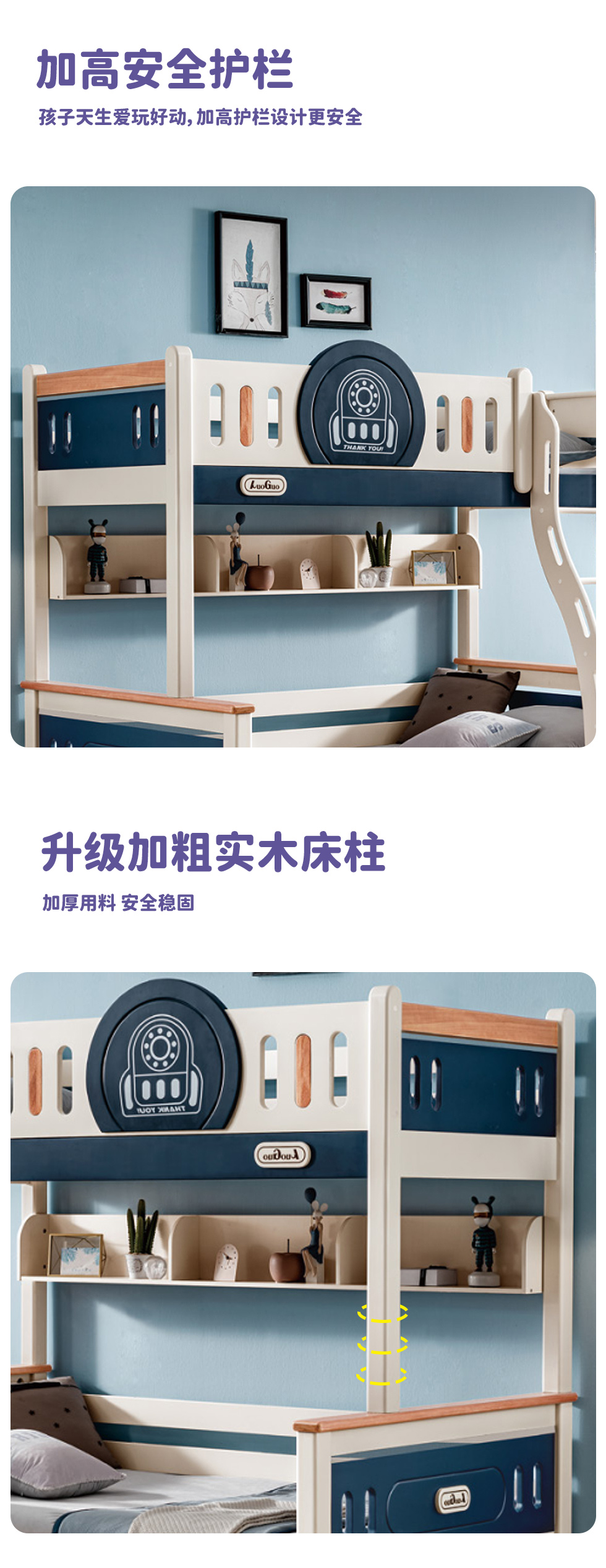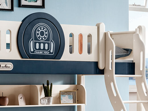 帕帕贝奇 儿童 金丝檀木+全实木(不含书架)上下床同宽 白+蓝 1.0米上下床定制¥1300