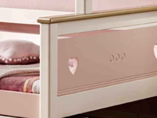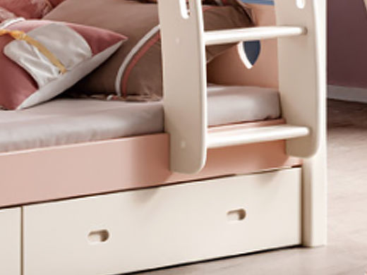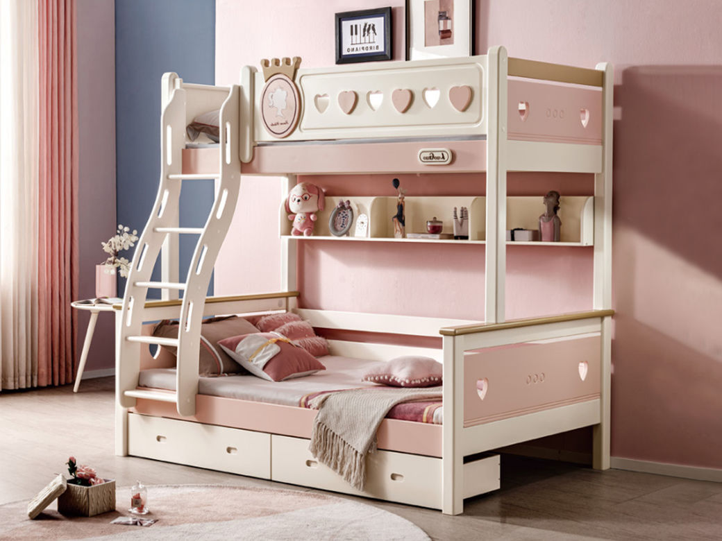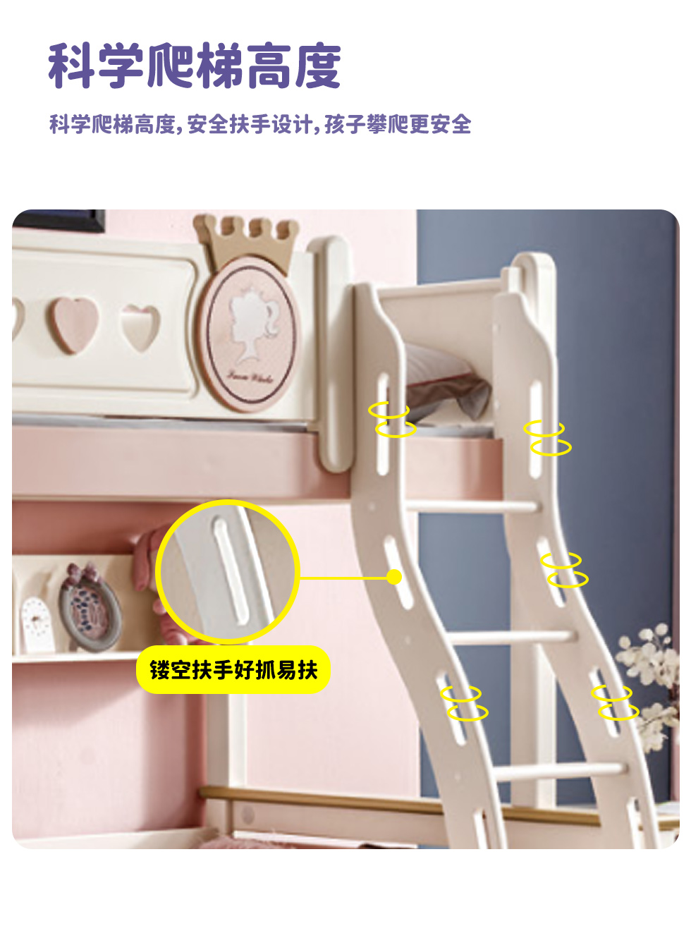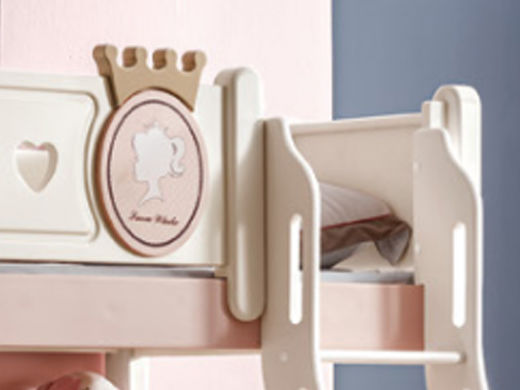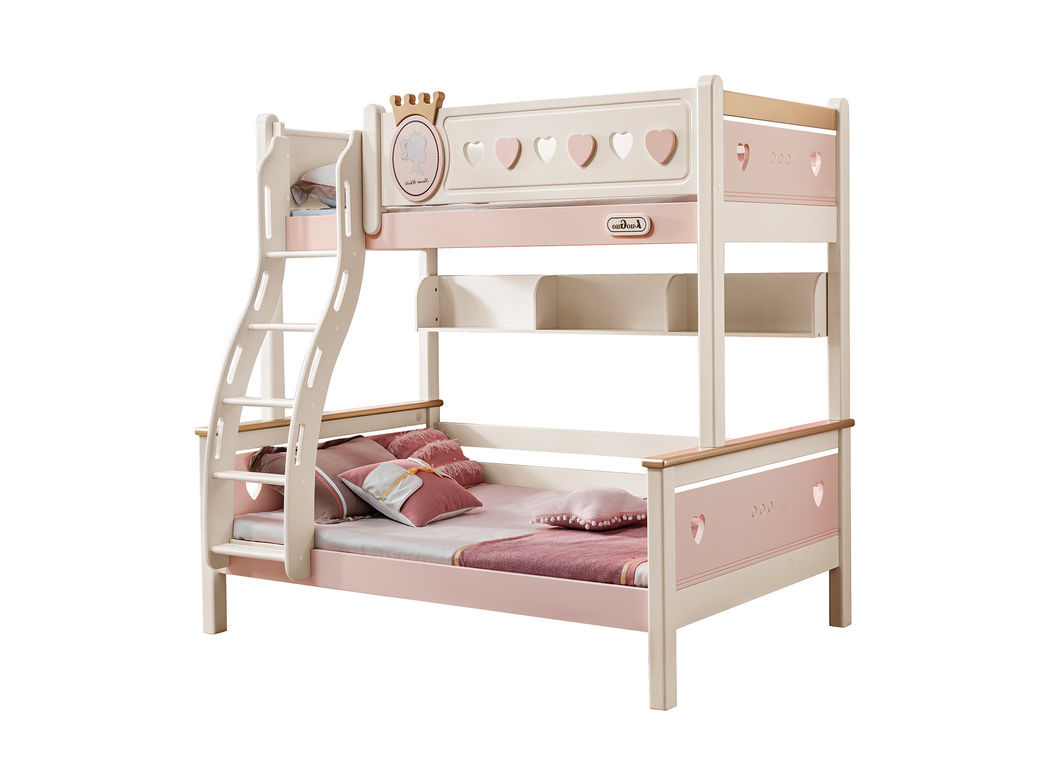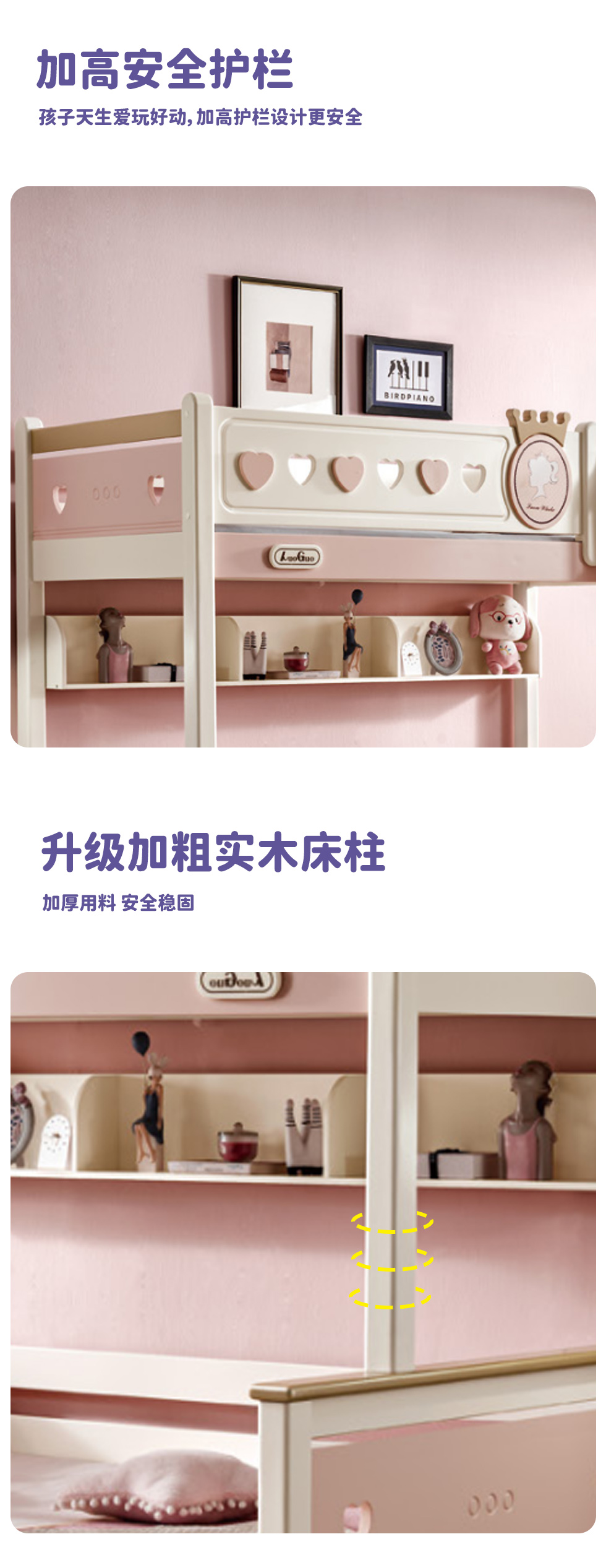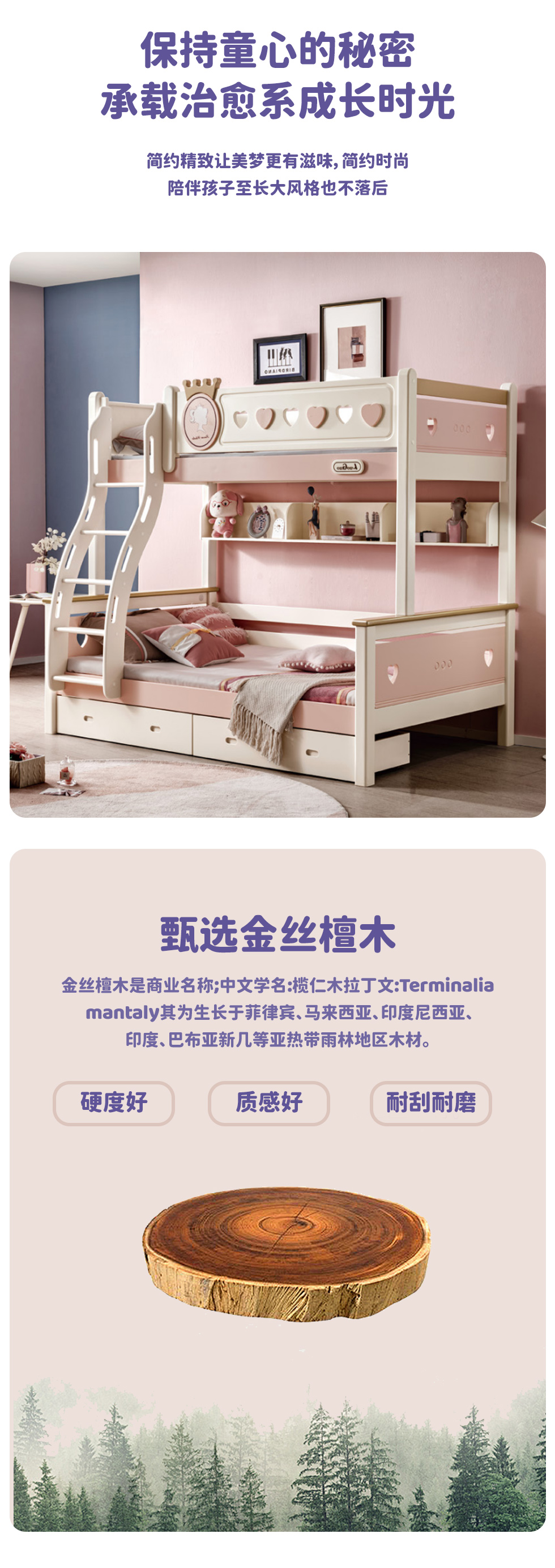 帕帕贝奇 儿童 金丝檀木+全实木(不含书架)上下床同宽 白+粉 1.0米上下床定制