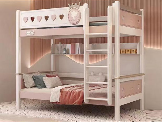 帕帕贝奇 儿童 金丝檀木+全实木(不含书架)上下床同宽 白+粉 1.0米上下床定制