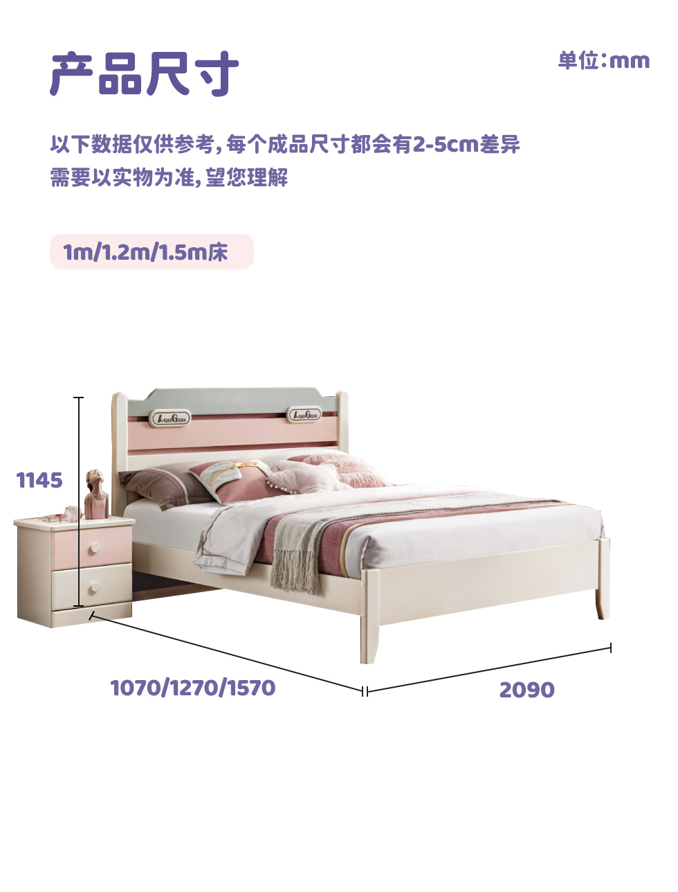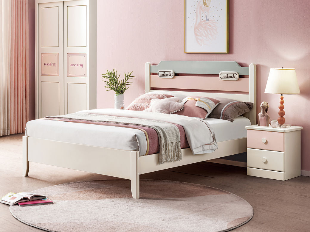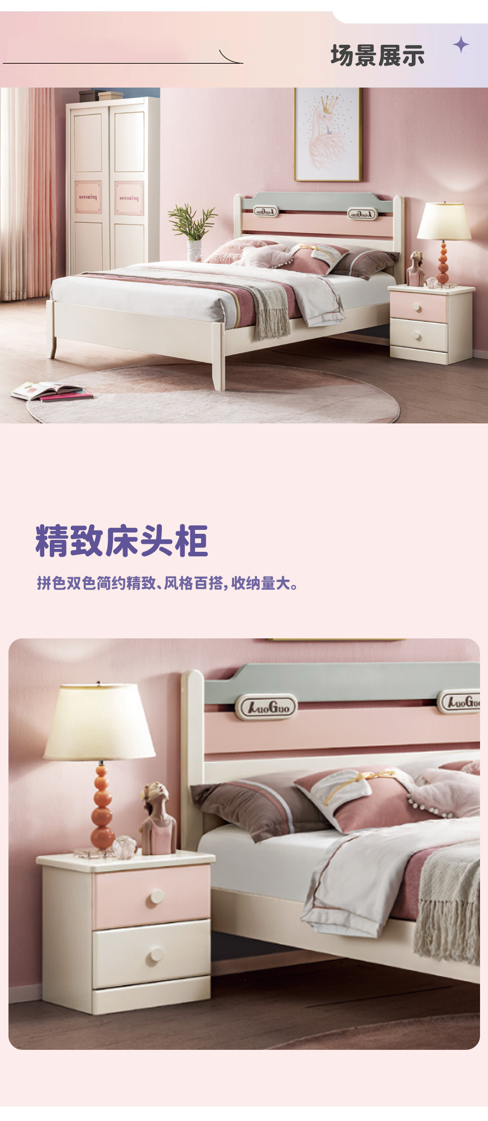 帕帕贝奇 儿童 金丝檀木+全实木 白+粉 1.5米床¥704
