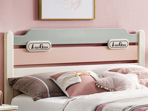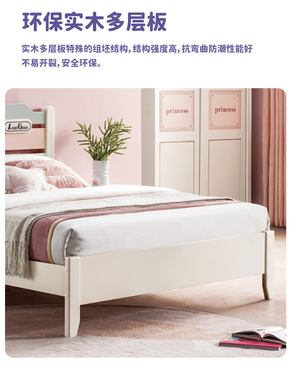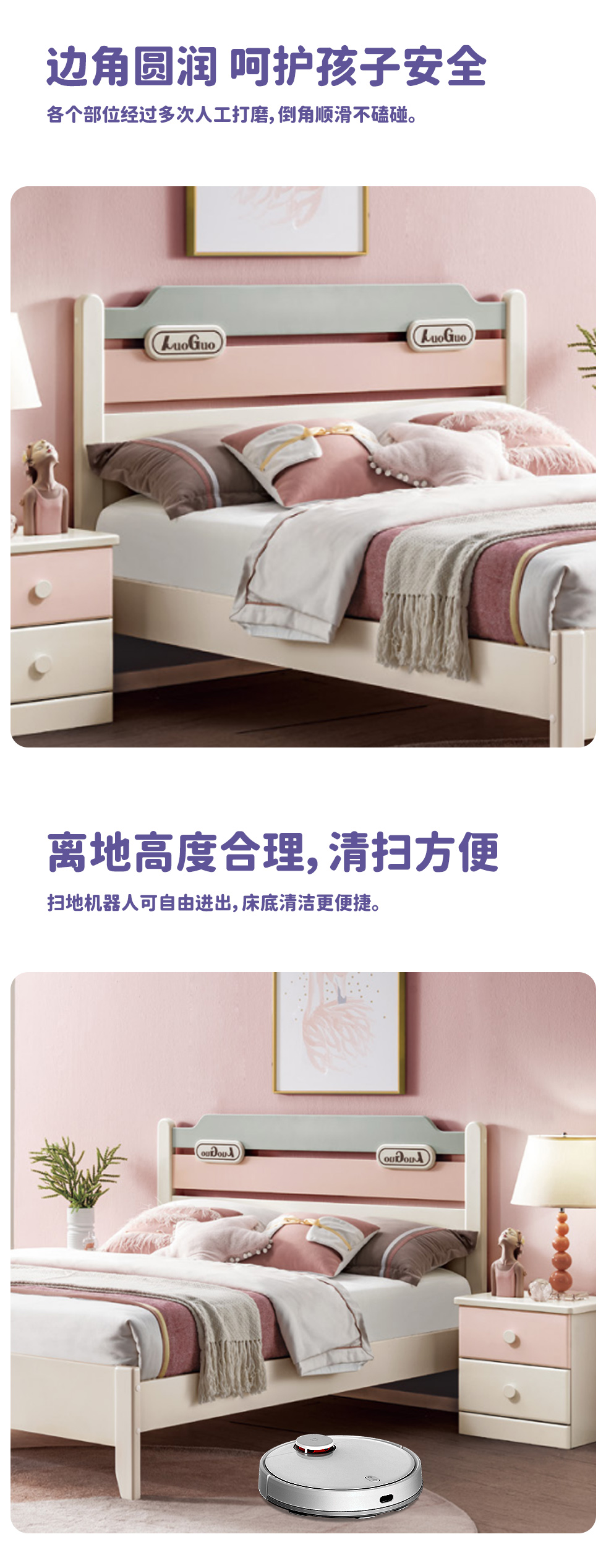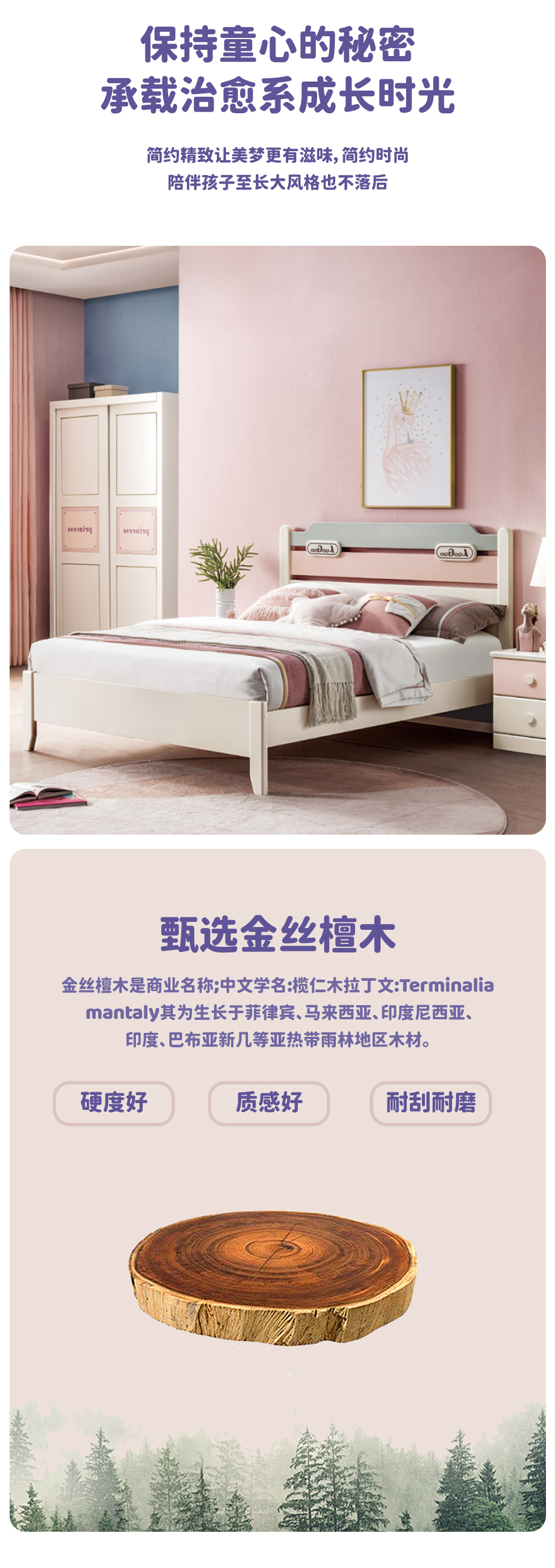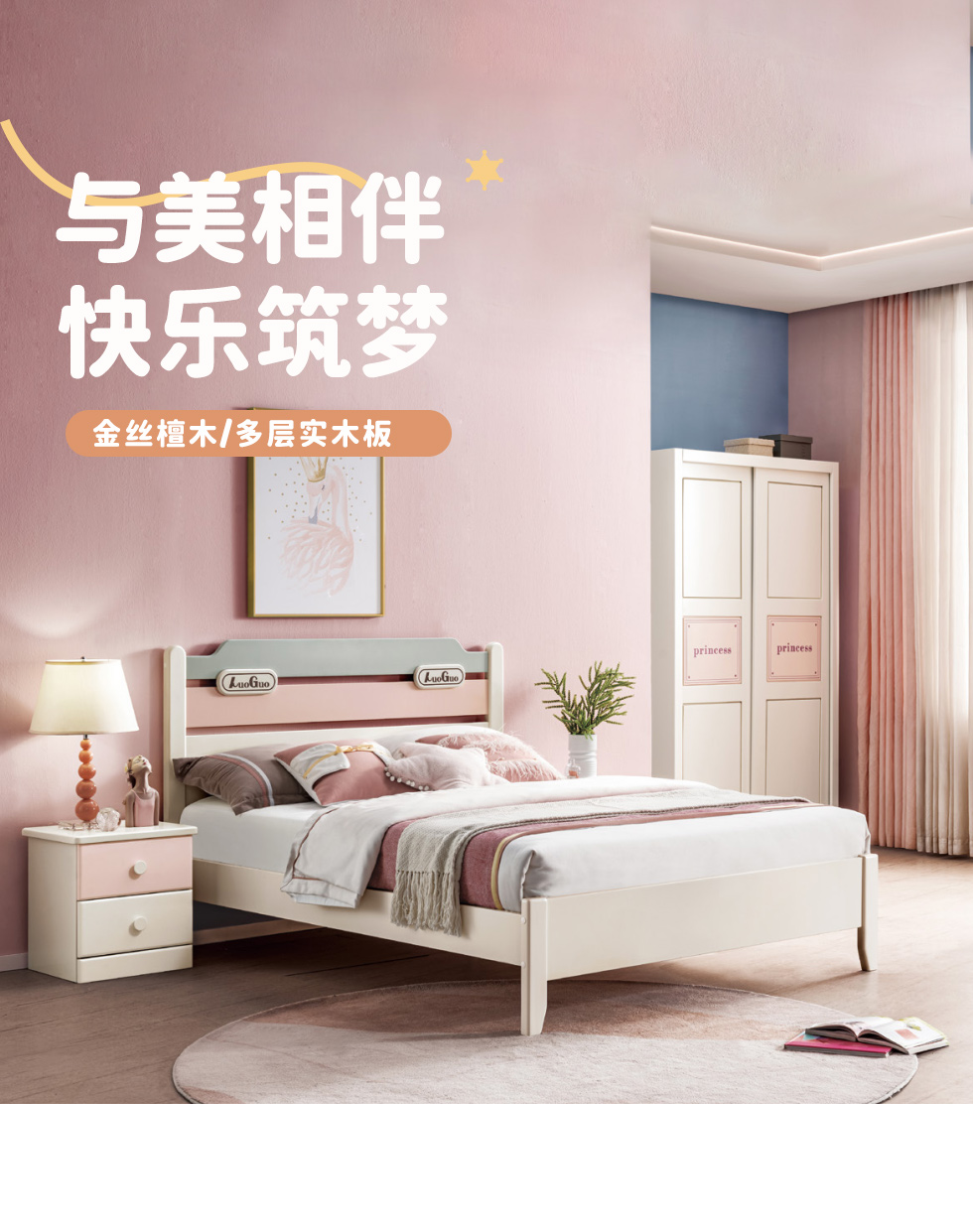 帕帕贝奇 儿童 金丝檀木+全实木 白+粉 1.5米床