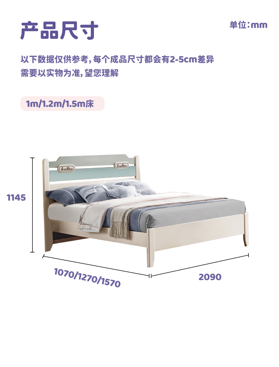 帕帕贝奇 儿童 桦木+全实木 白色 1.5米床