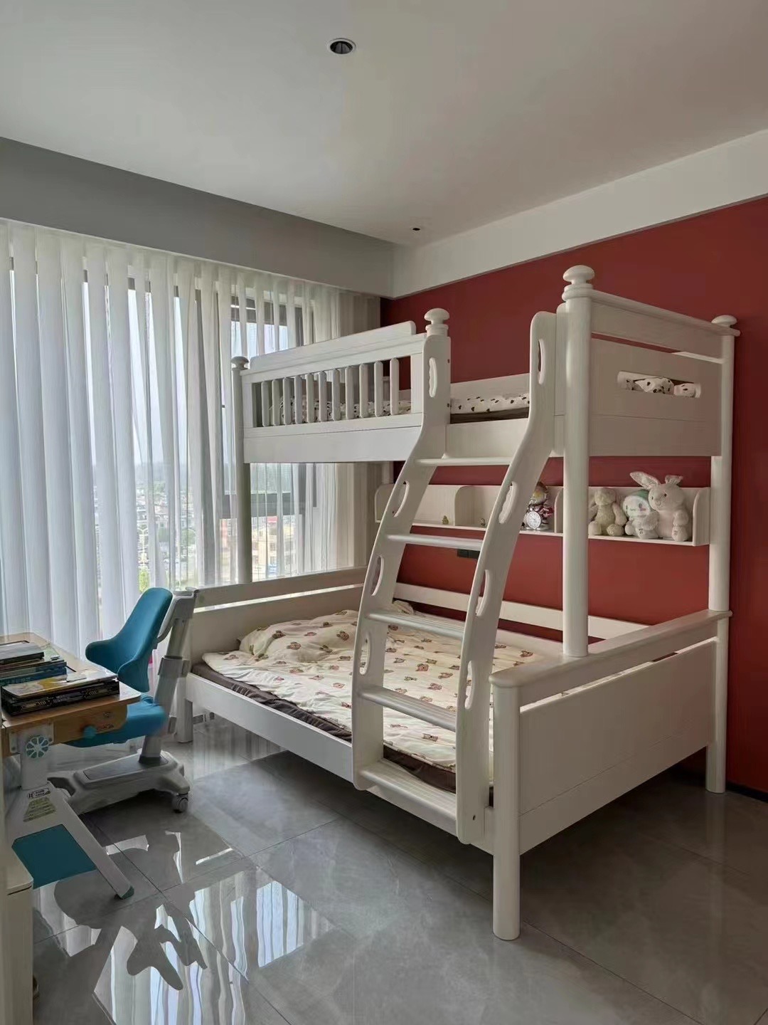 帕帕贝奇 儿童 桦木+全实木(不含书架) 白色 1.2米上下床