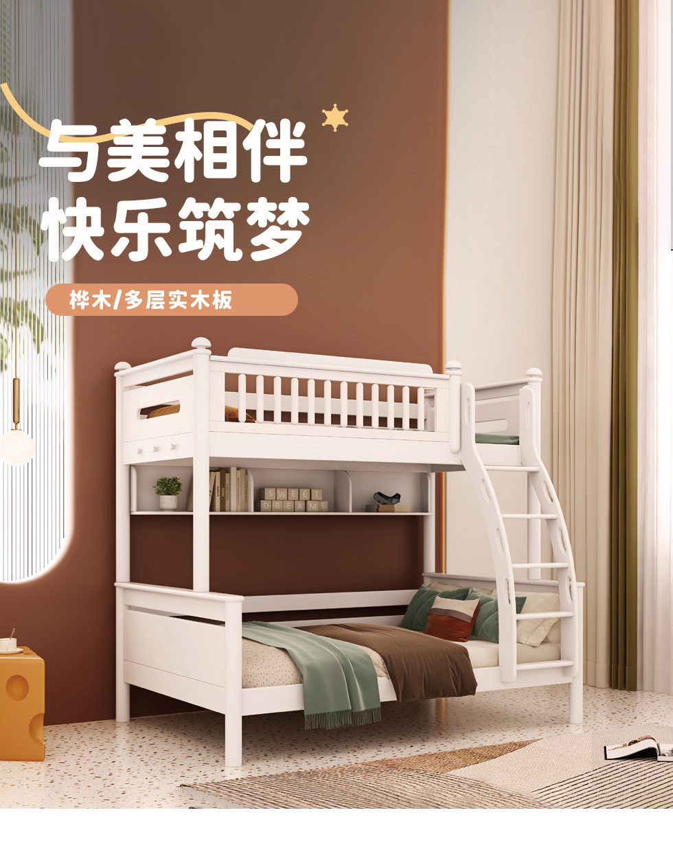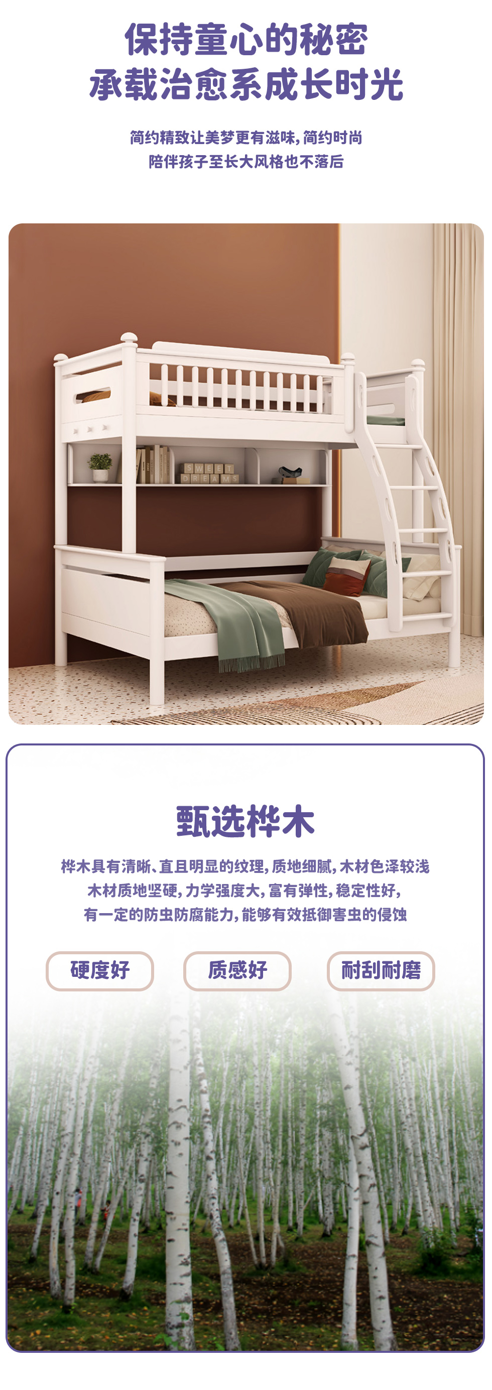 帕帕贝奇 儿童 桦木+全实木(不含书架) 白色 1.5米上下床