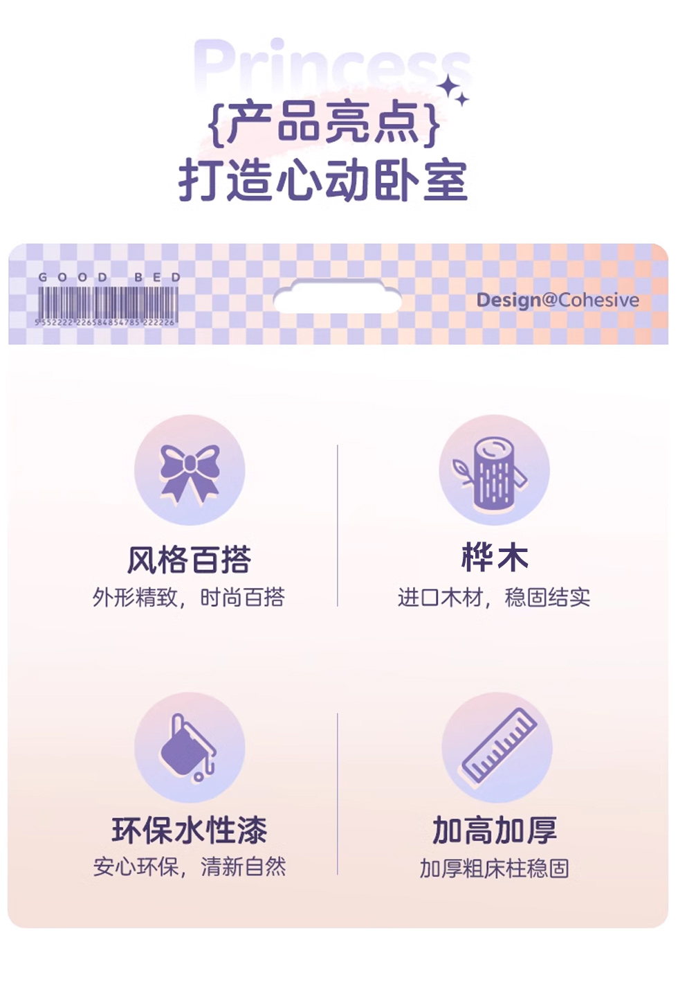 帕帕贝奇 儿童 金丝檀木+全实木(不含书架,步梯,床下抽屉) 白+粉 1.2米