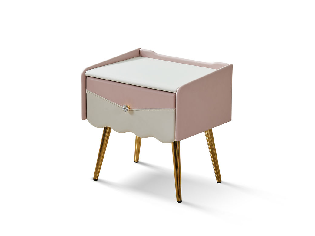快乐童眠 儿童床头柜 硅胶去污皮+E1级实木多层板+黑色三叉脚五金配件 粉白色
