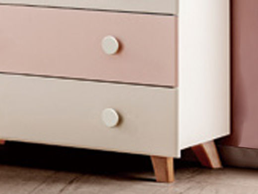 帕帕贝奇 儿童 金丝檀木+全实木 白+粉 五斗柜