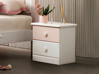 帕帕贝奇 儿童 金丝檀木+全实木 白+粉 床头柜