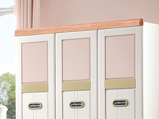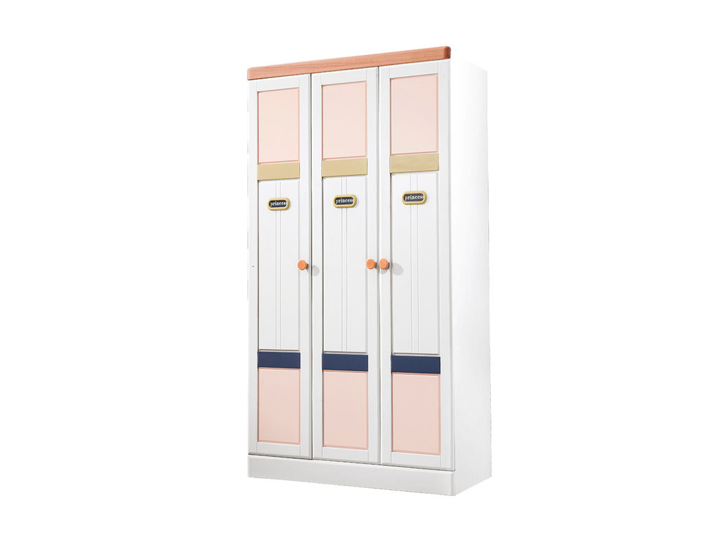 帕帕贝奇 儿童 金丝檀木+全实木 白+粉 三门衣柜