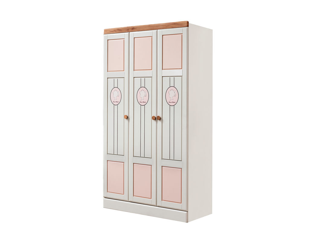 帕帕贝奇 儿童 金丝檀木+全实木 白+粉 三门衣柜