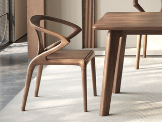墨云阁 中古风 南美胡桃木+多层实木板 胡桃色 餐椅1把