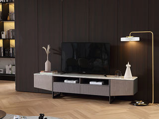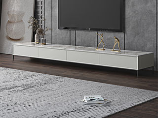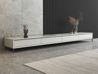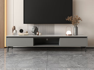 B系优选 现代简约 中纤板(MDF)烤漆+岩板台面6mm+碳素钢脚架 意大利灰(不含边柜) 2米电视柜(未开电源孔)