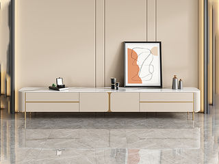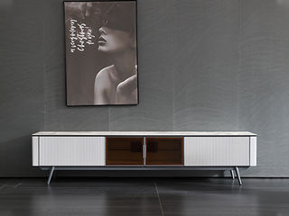 B系优选 现代简约 中纤板(MDF)烤漆+碳素钢脚架+岩板+实木松木抽屉 香奈儿 2米电视柜(未开电源孔)