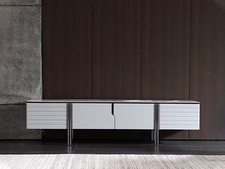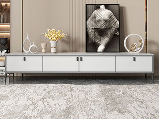 B系优选 现代简约 中纤板(MDF)哑光烤漆+碳素钢脚+岩板 亚光雪山白 (不含边柜)2米电视柜(未开电源孔)
