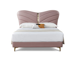 CBD家居 极简 床头接触面HE07+/HE02纳纤皮+其他HE07纳纤皮+东亚海绵+云杉木实木主框架+分体卷帘式排骨条 HE07浅绛色/HE02蜡白 1.5米床架