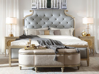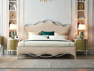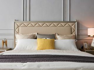 艾美侈 美式 俄罗斯桦木+纯铜件+二层真皮+实木床板 香槟银 1.5米床