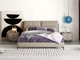 B系优选 现代简约 接触面真皮+仿皮+木框架高密 度回弹海绵+静音防滑实木十分排骨条+静音条 1.5米 真皮软床(价格不含高箱,如需定制请咨询客服)