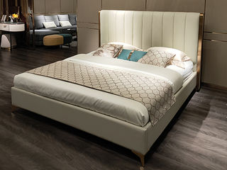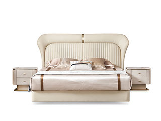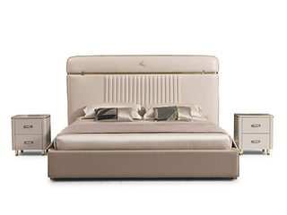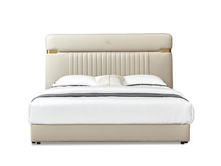 拜洛迪 轻奢 接触面真皮+不锈钢围边,三面齐边大床 米灰色 1.8米床
