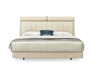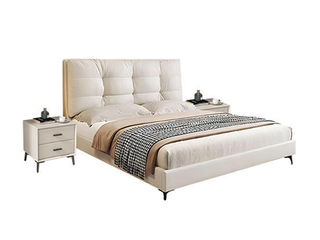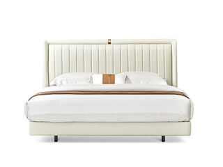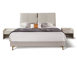 拜洛迪 轻奢 床头拉点设计+接触面头层牛皮+实木排骨架 米白色 1.8米床