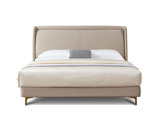 拜洛迪 轻奢 接触面真皮靠头+三边齐边+实木排骨架 米灰色 1.8米床