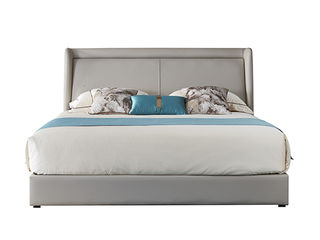 非凡工艺 现代简约 接触面头层真皮+进口落叶松+多层实木板+高回弹海绵+碳素钢五金+10分钢木排骨架 浅灰色 1.8米床