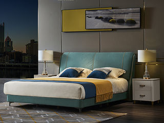 拜洛迪 轻奢 雪尼尔绒布+三边齐边+实木静音排骨架 孔雀蓝 1.8米床