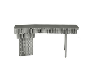 洛萨 极简 E1级中纤板进口染色木皮+玻璃+不锈钢 书桌